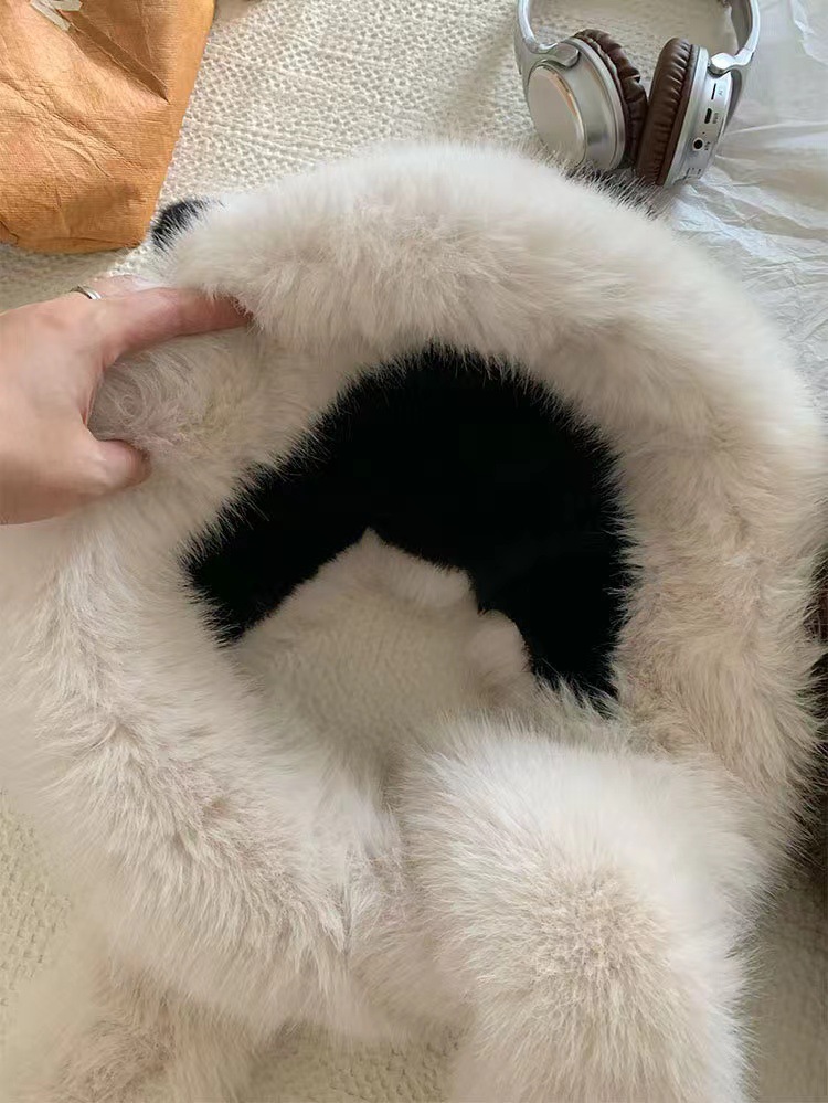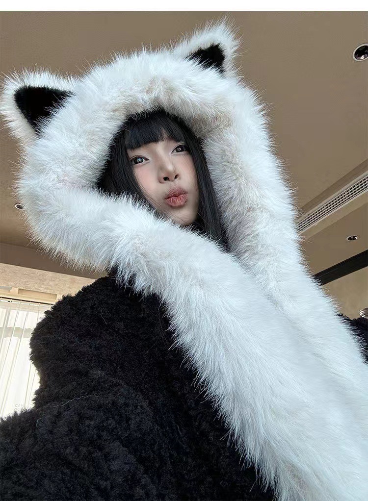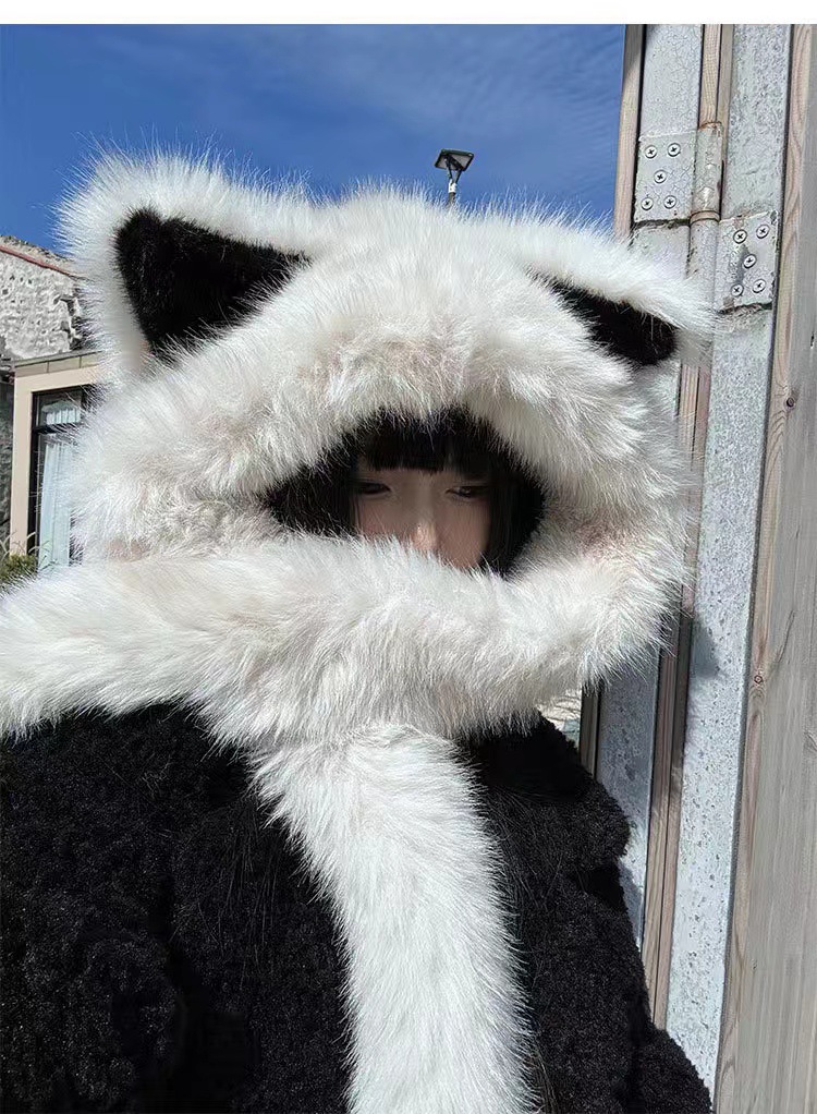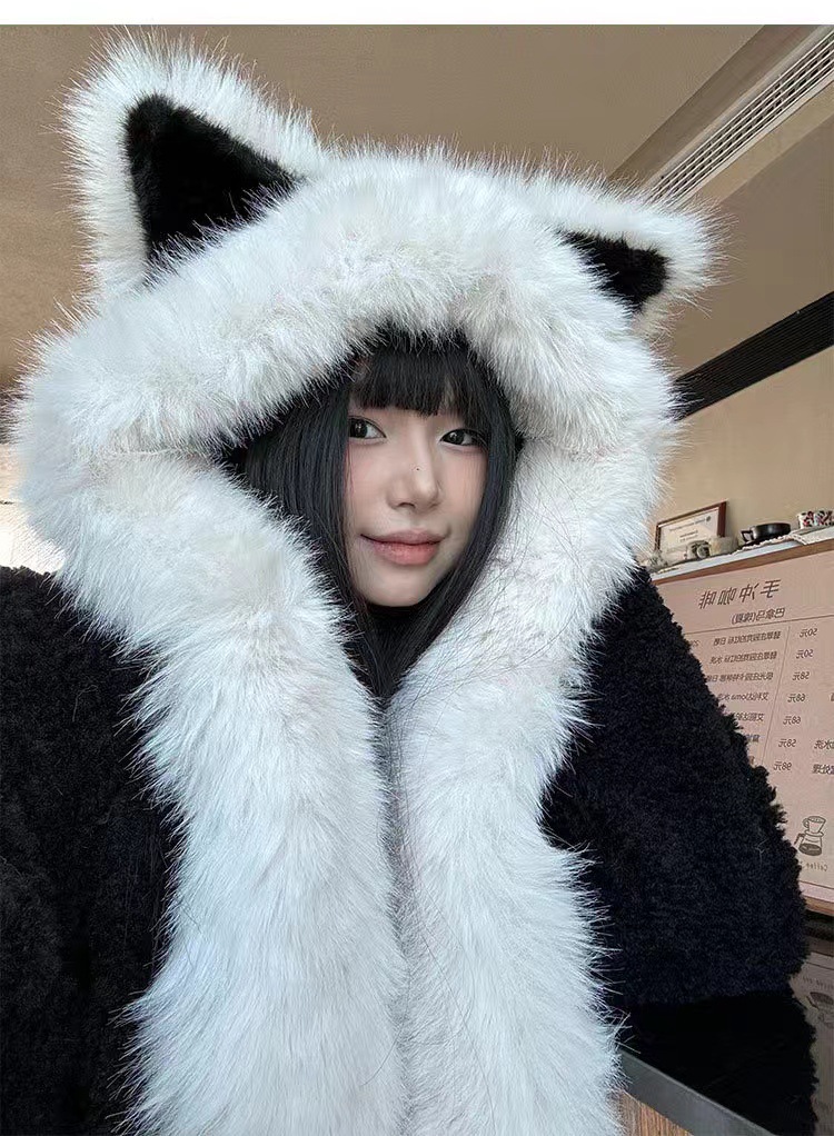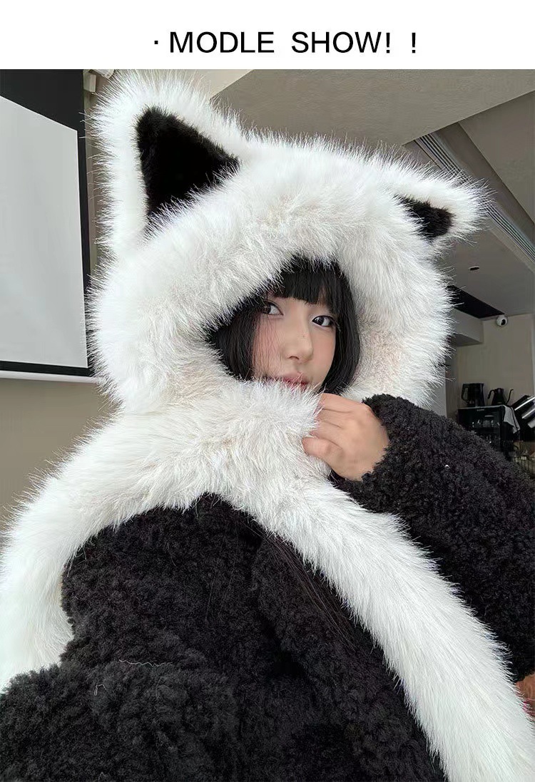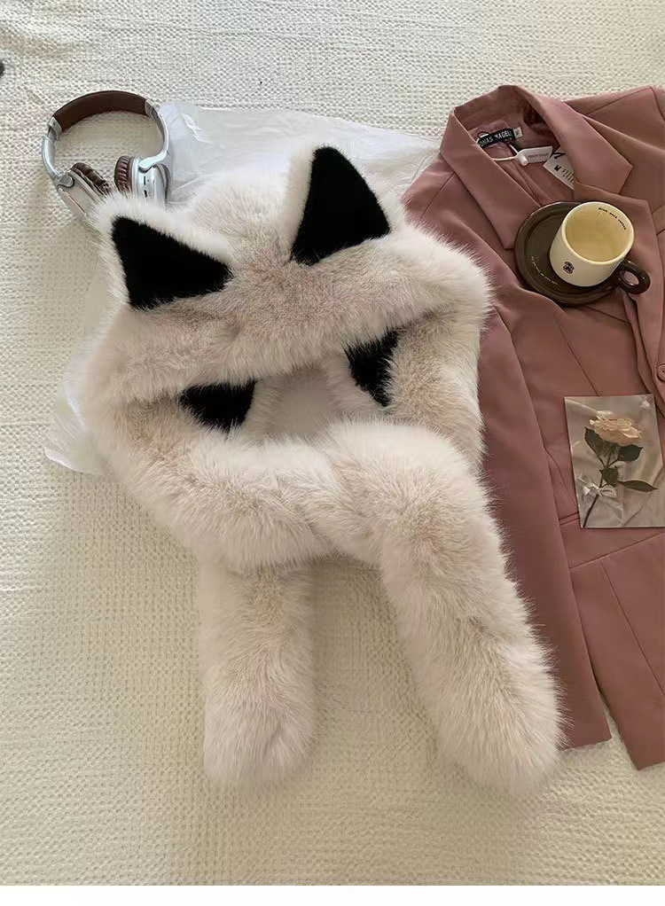 Faux Fur Fox Ear Hooded Scarf – Cozy Winter Wrap