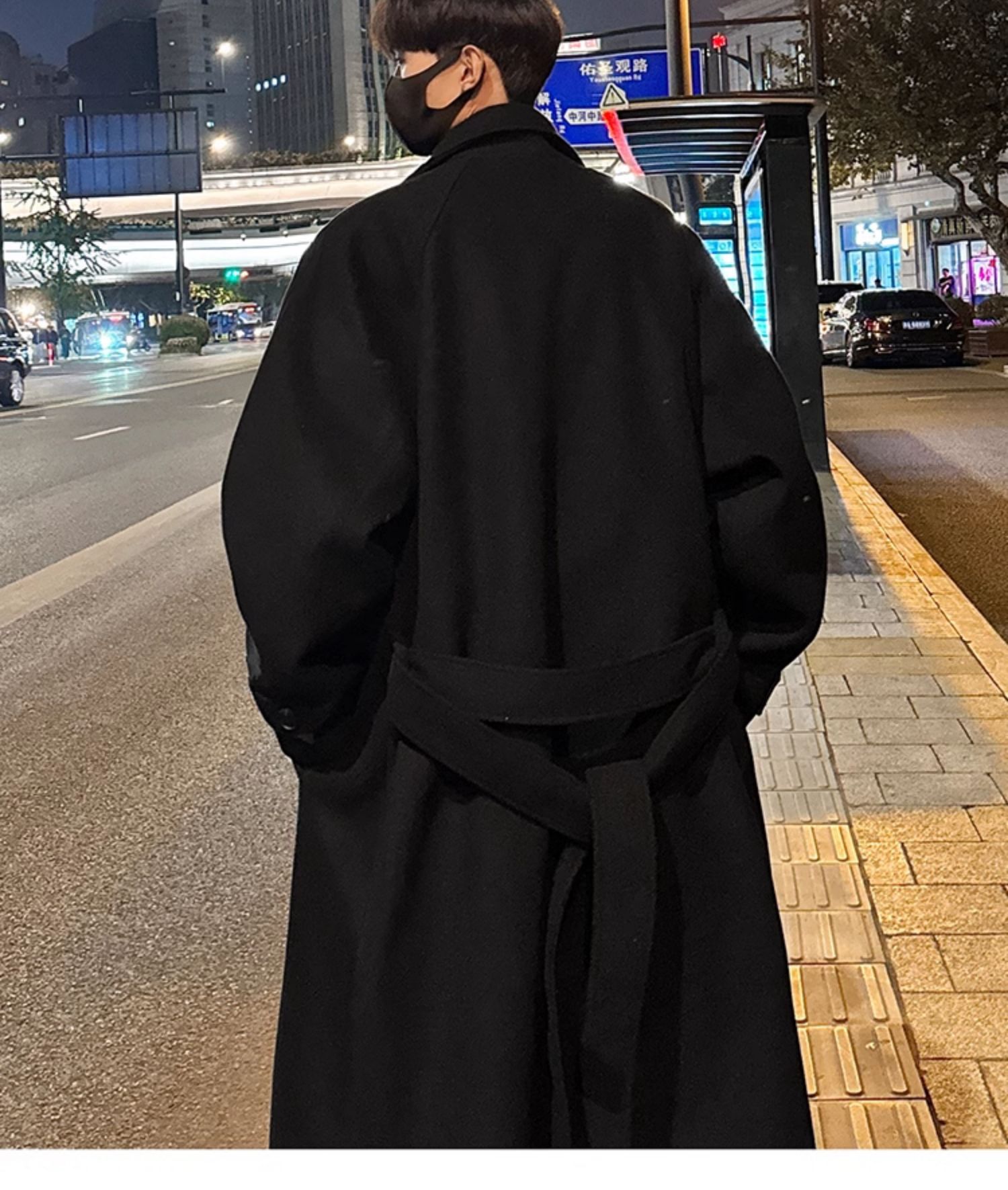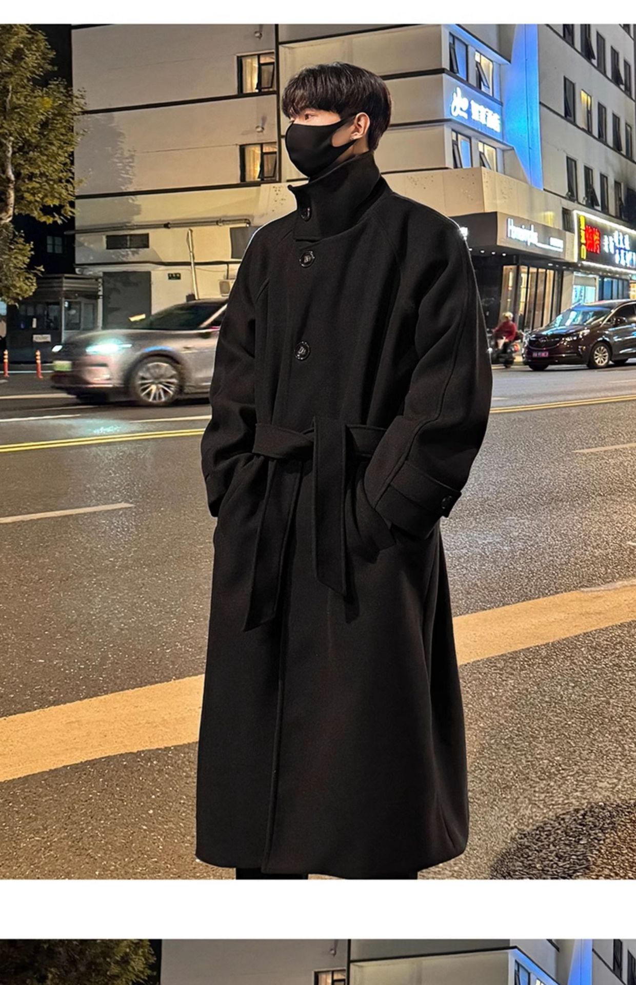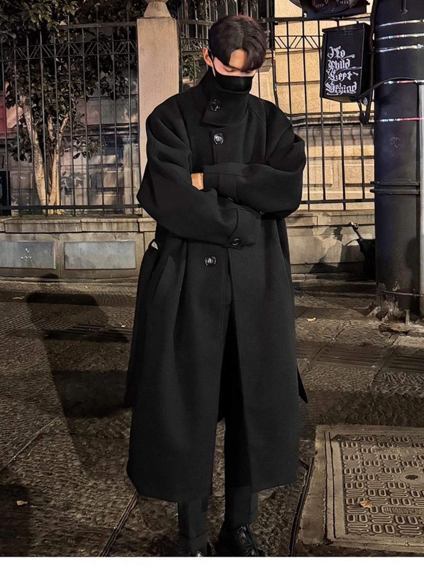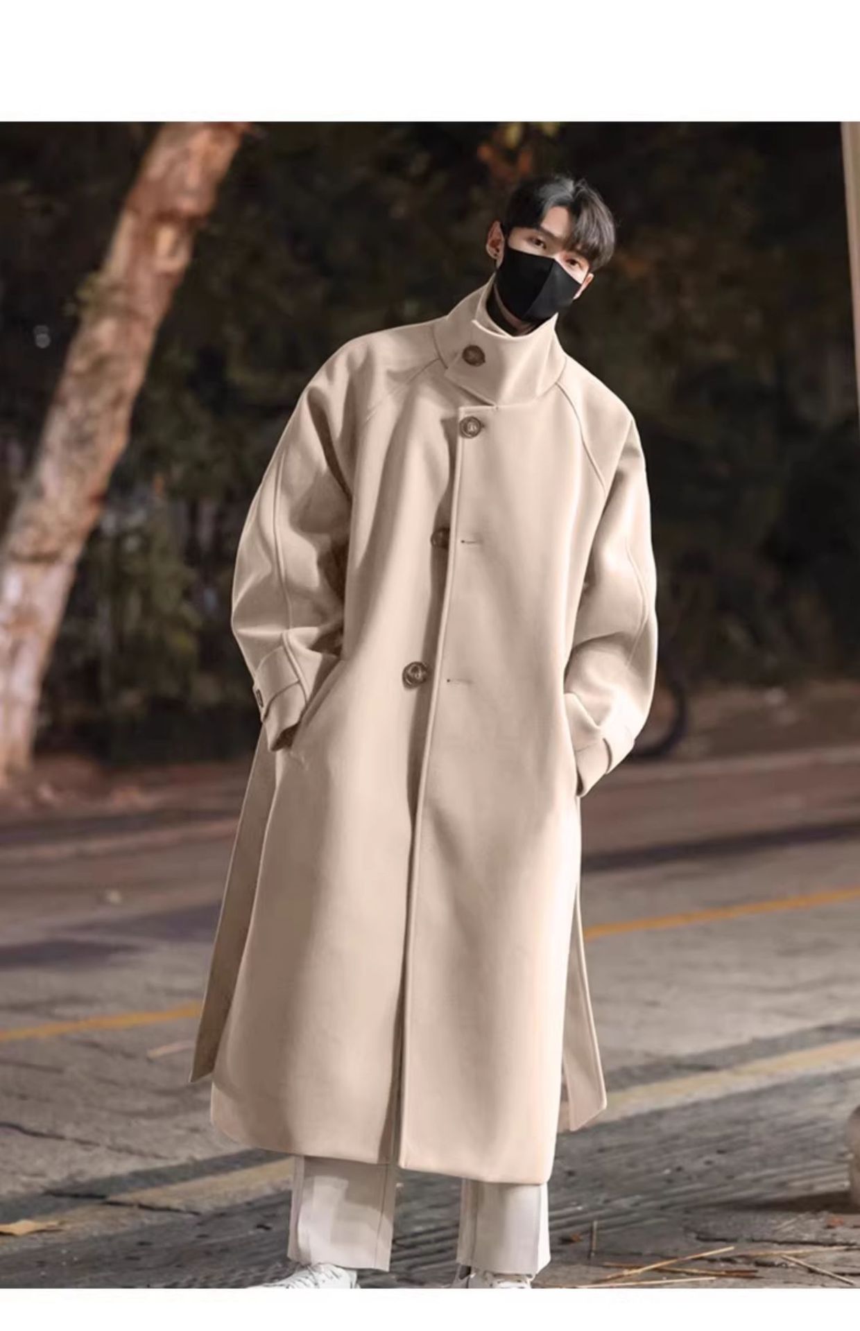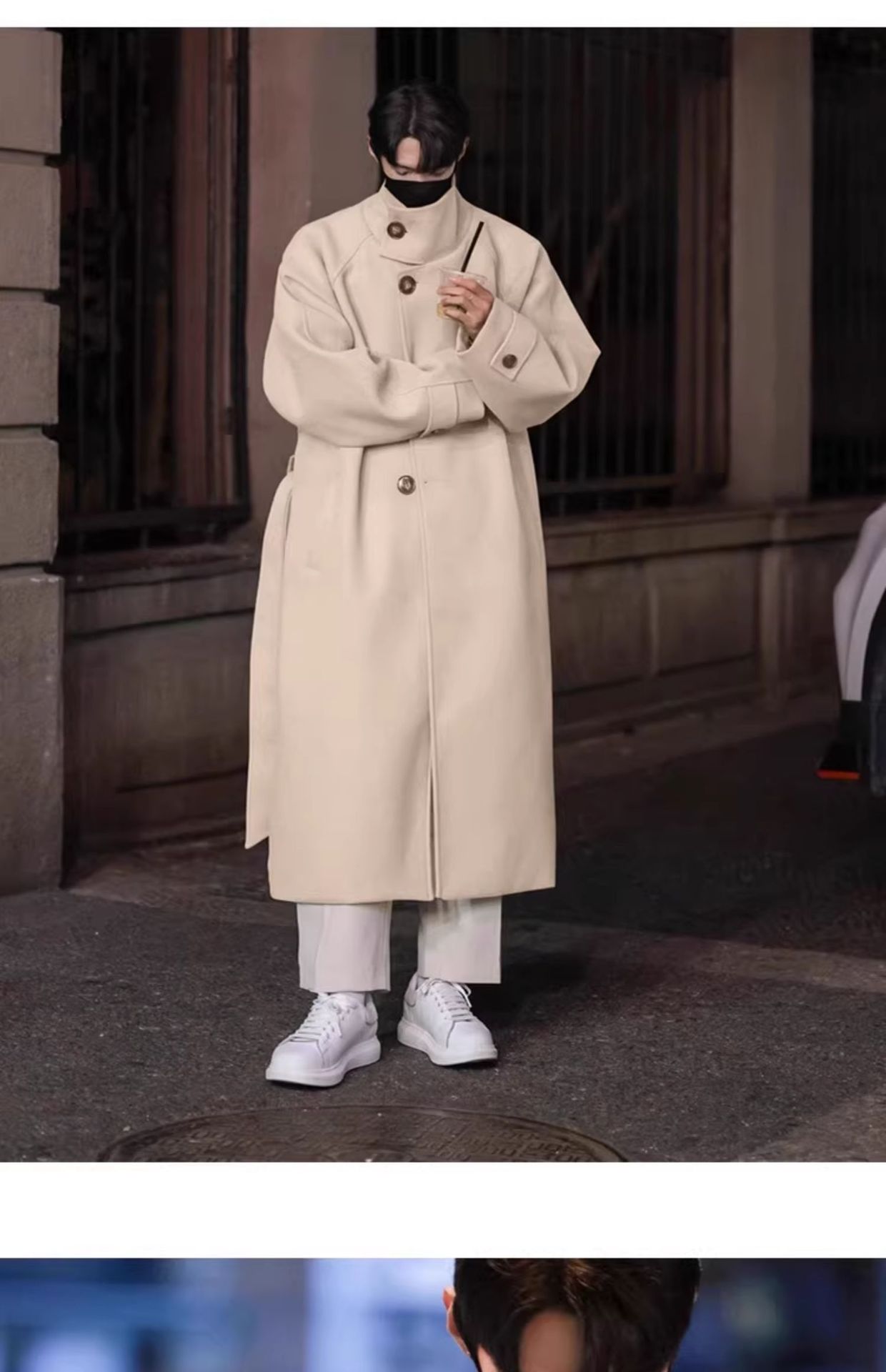 Men’s Maillard Over-the-Knee Wool Coat, Winter Thickened Tailored Long Coat, Korean Streetwear Style