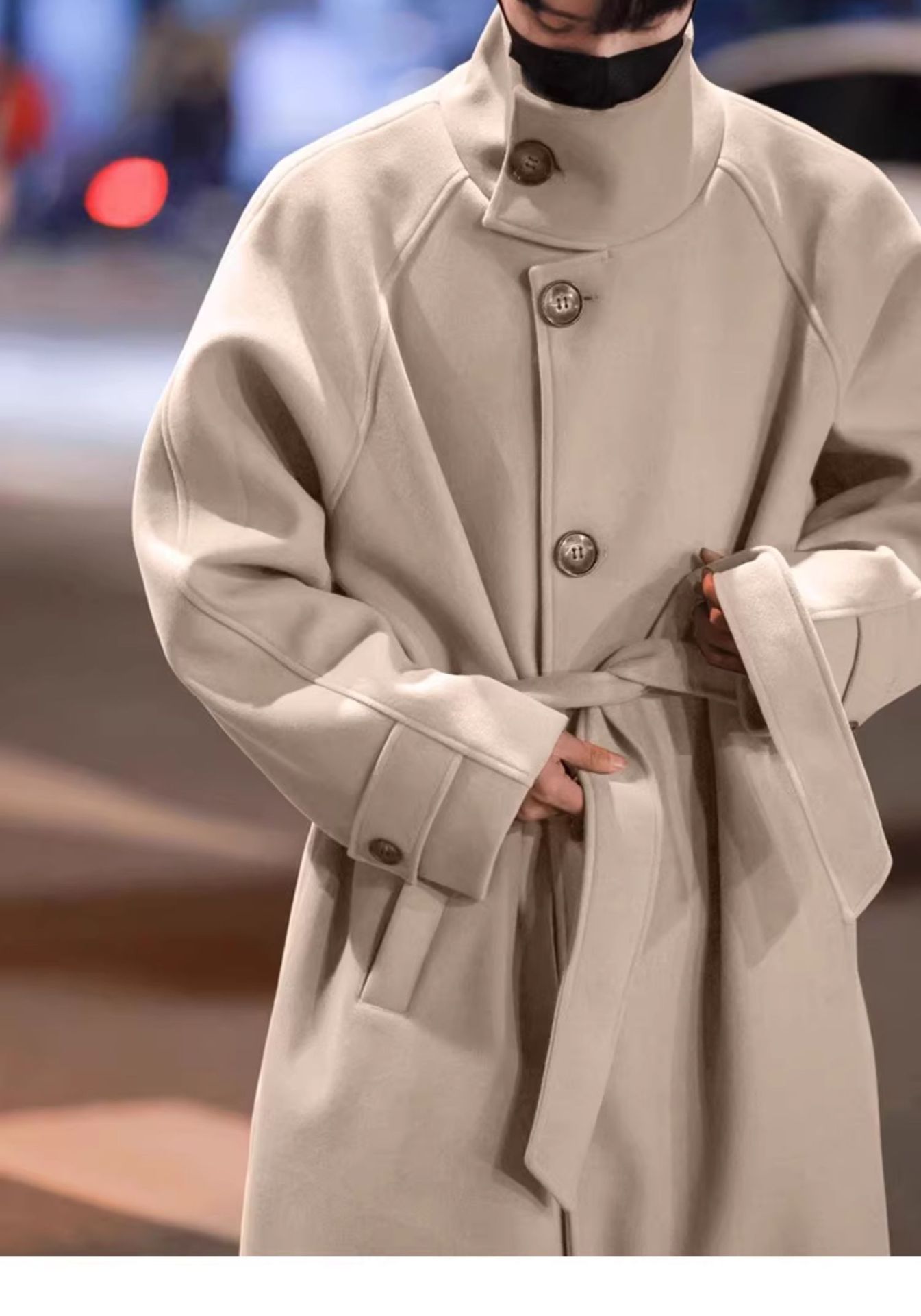 Thickened woolen fabric ensures warmth without sacrificing style, making it a go-to layer for cold evenings, city walks, and elevated casual outfits.