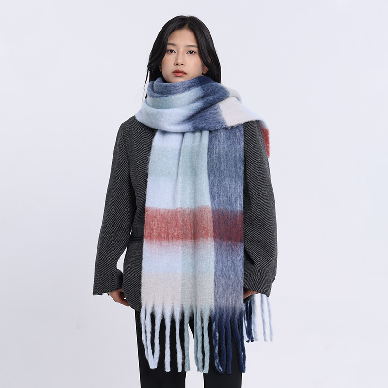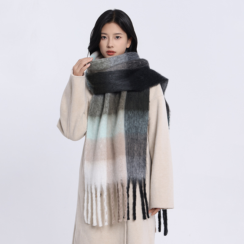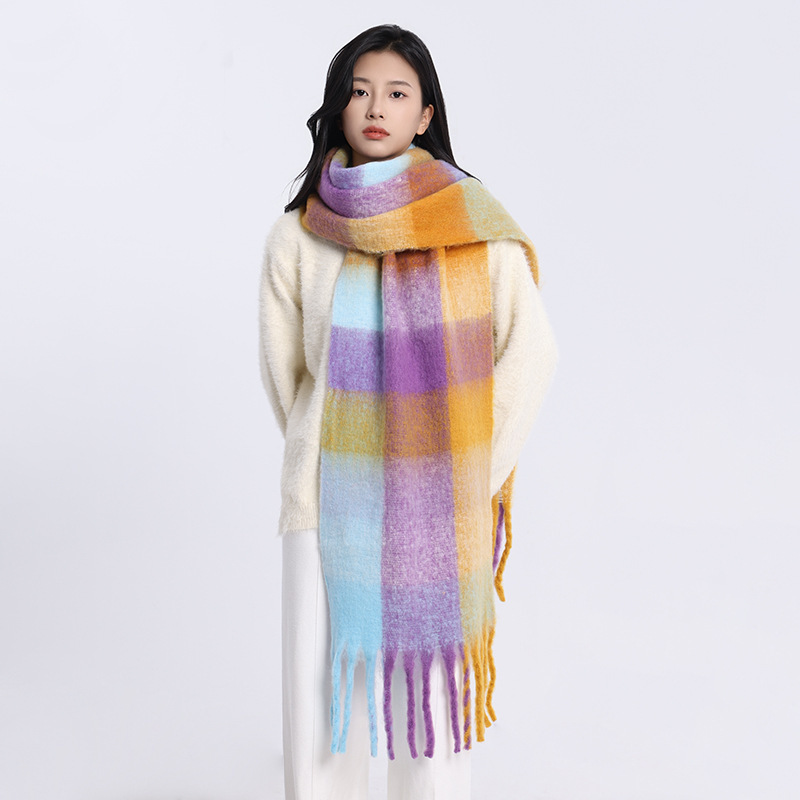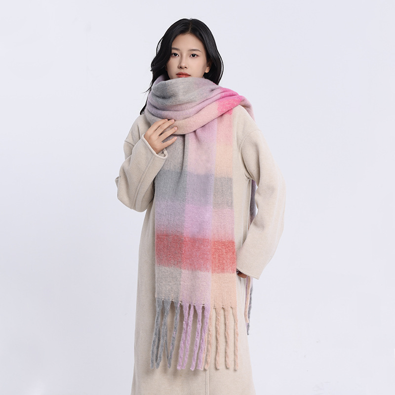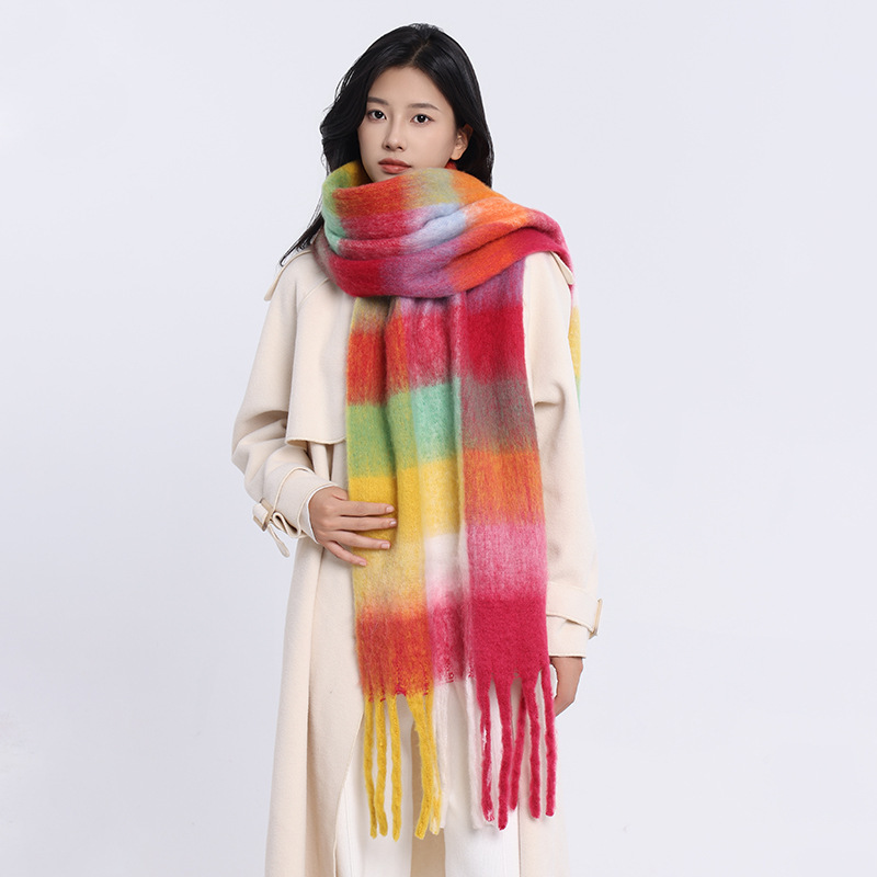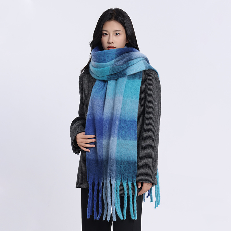 /Stay cozy and stylish with this oversized fuzzy scarf. Featuring a soft brushed texture, gradient color design, and playful fringe edges, it’s the perfect statement piece to brighten your winter outfits. Lightweight yet warm, this scarf is ideal for wrapping up during chilly days while adding a splash of color to your look.