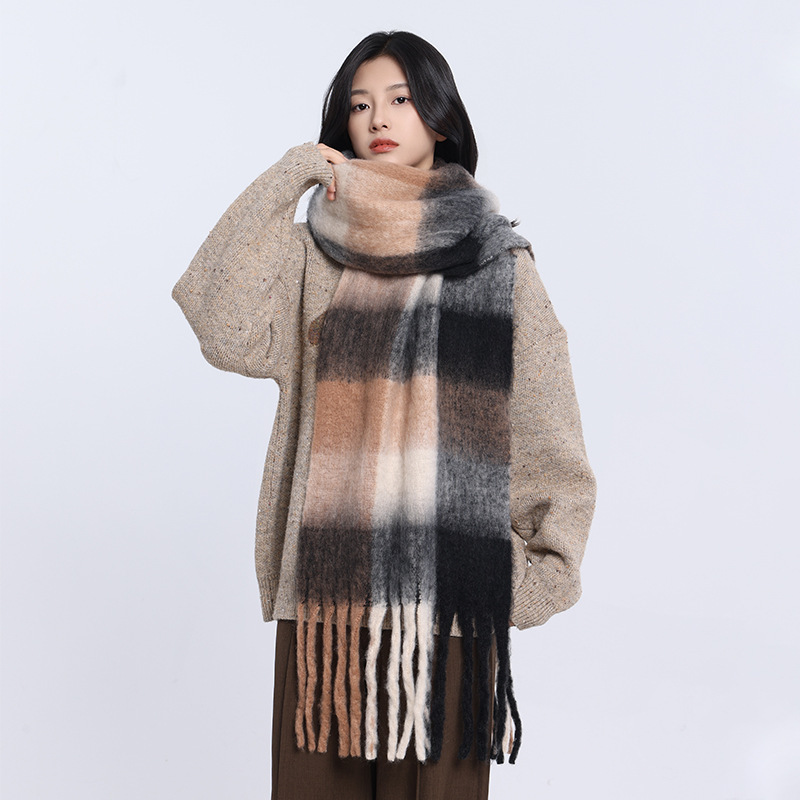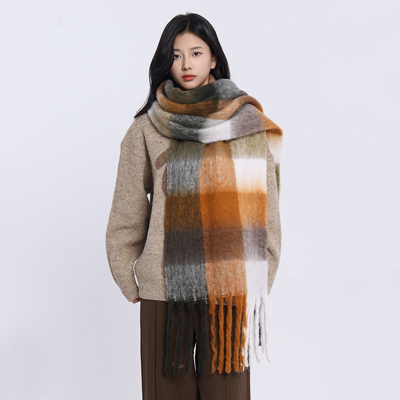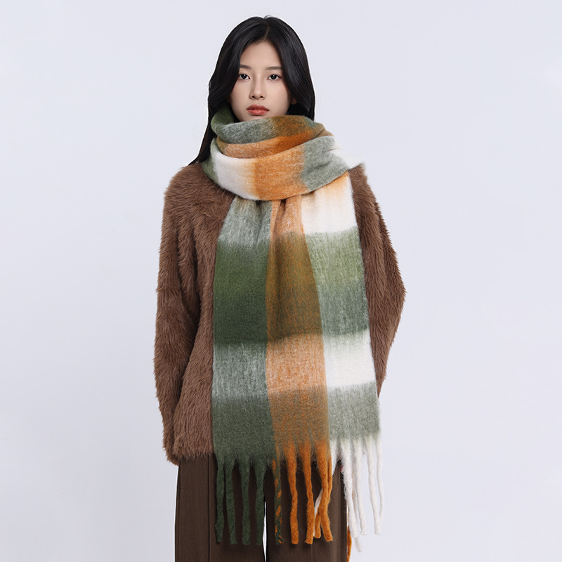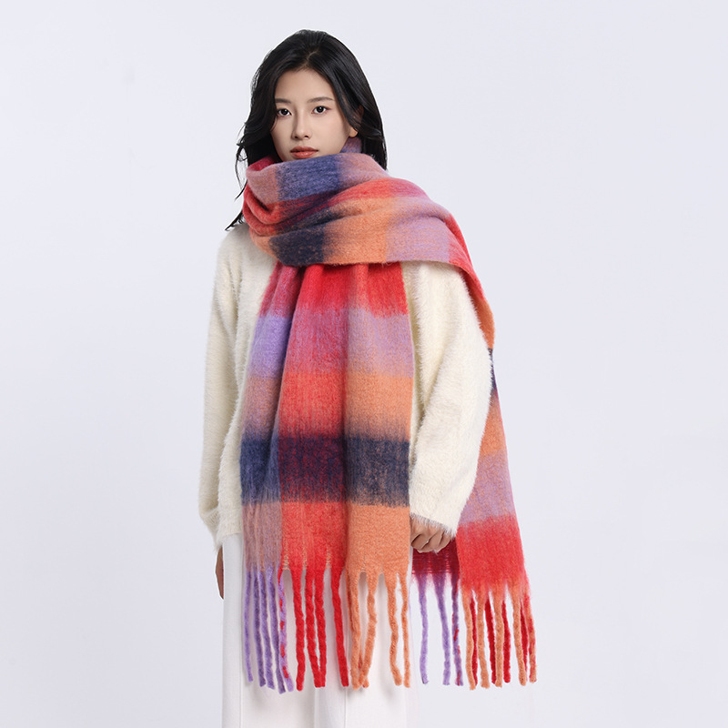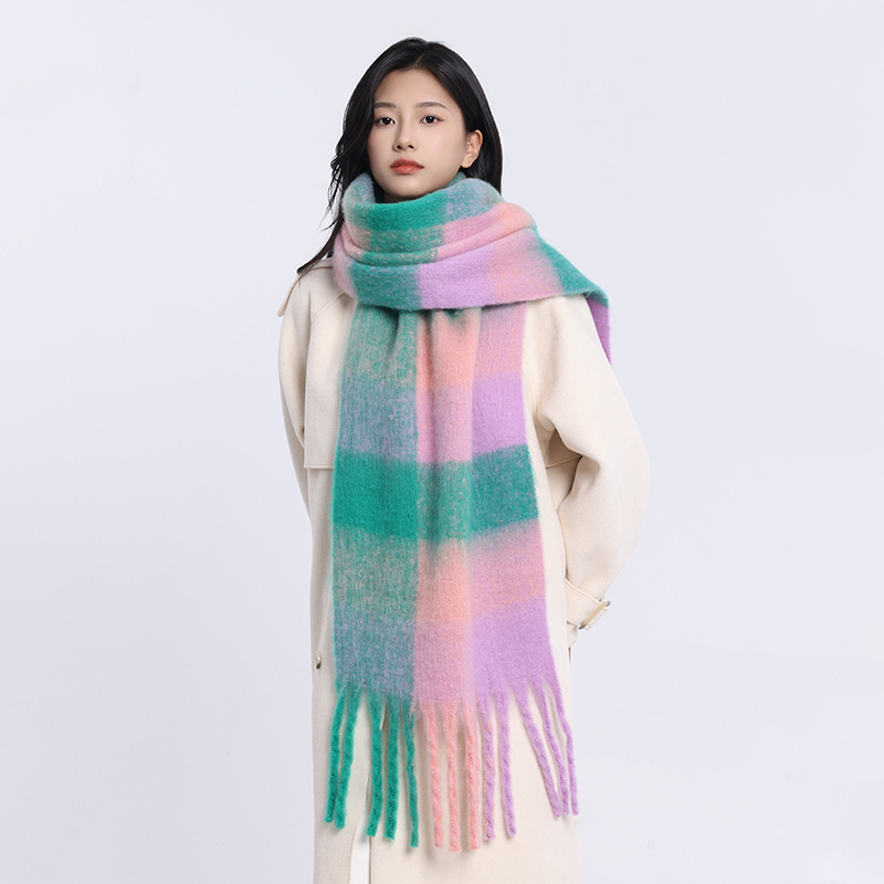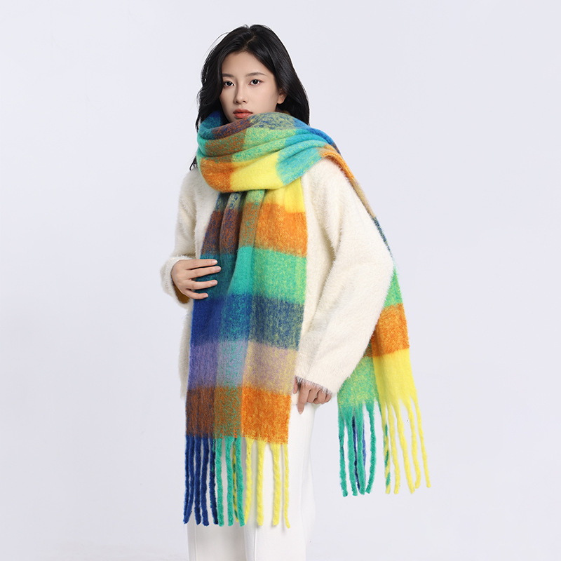 /Stay cozy and stylish with this oversized fuzzy scarf. Featuring a soft brushed texture, gradient color design, and playful fringe edges, it’s the perfect statement piece to brighten your winter outfits. Lightweight yet warm, this scarf is ideal for wrapping up during chilly days while adding a splash of color to your look.