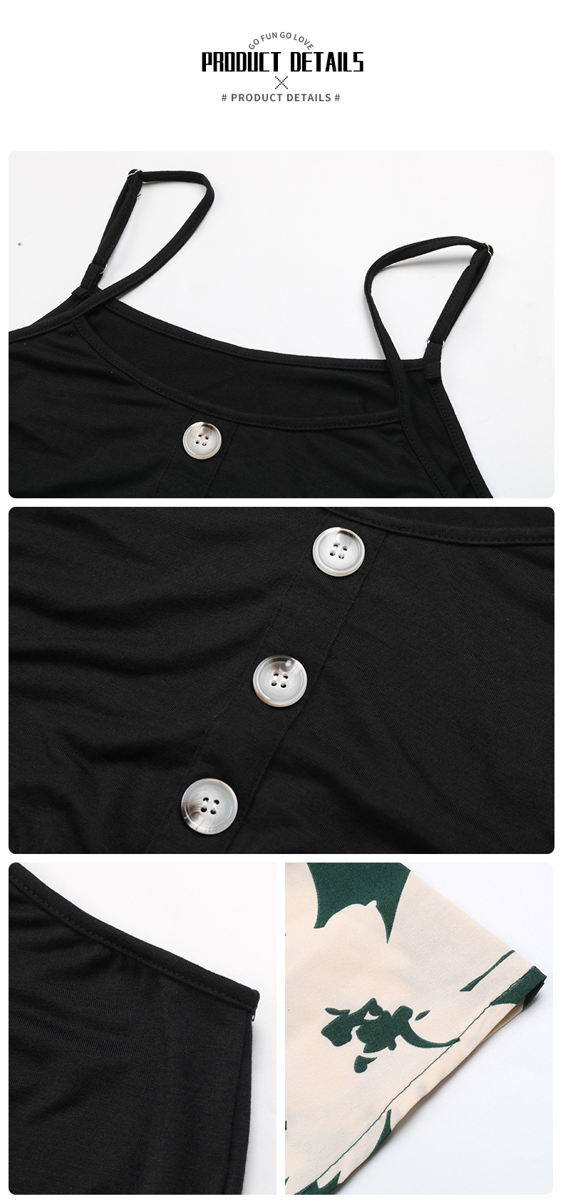 Women’s Floral Cami Midi Dress – Contrast Button Summer Sundress
