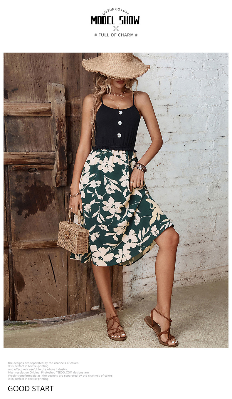 Stay effortlessly stylish in this floral cami midi dress featuring a soft button-detail bodice and flowy printed skirt. Designed with a flattering waistline and lightweight feel, this summer sundress is perfect for holidays, beach days, and casual outings.