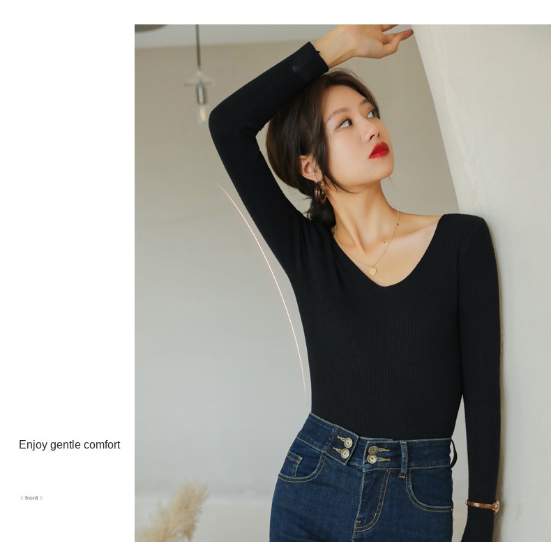 Women’s Ribbed V-Neck Knit Top – Slim Fit Long Sleeve Sweater