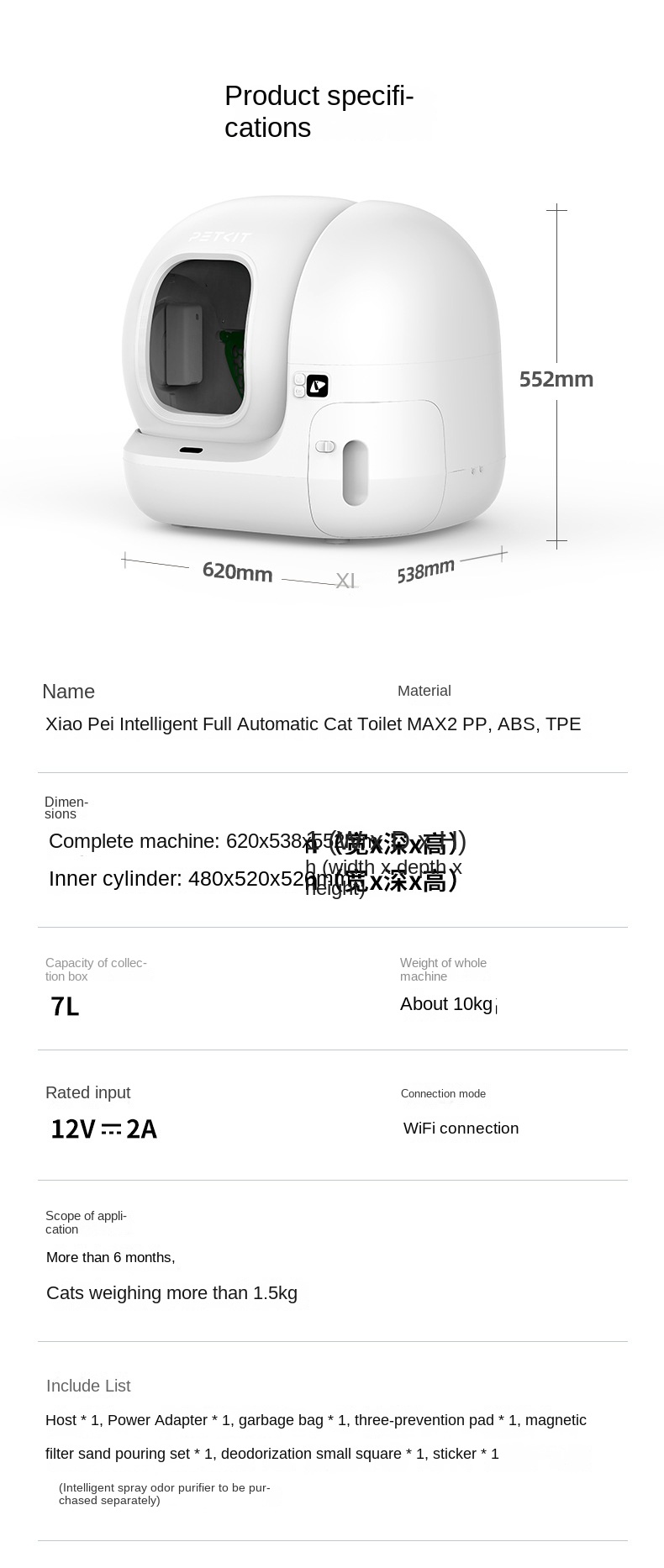 Xiaopei Smart Cat Toilet Max2 Fully Automatic Cat Litter Box Second Generation Upgraded Extra Large Electric Fully Enclosed Cat